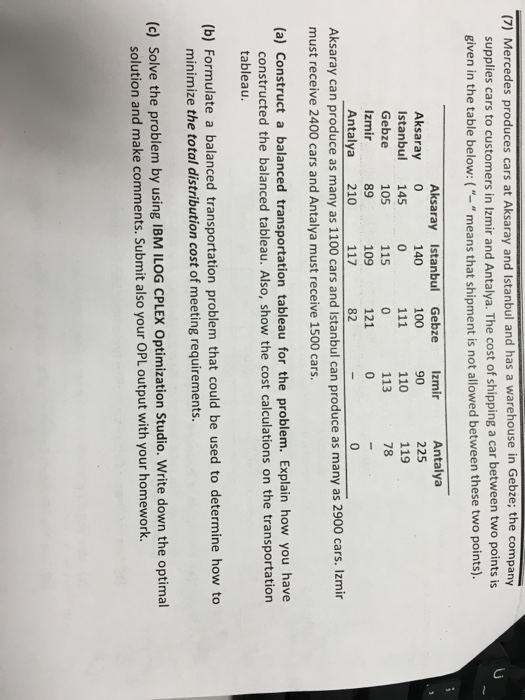 Solved Mercedes Produces Cars At Aksaray And Istanbul And Chegg Com